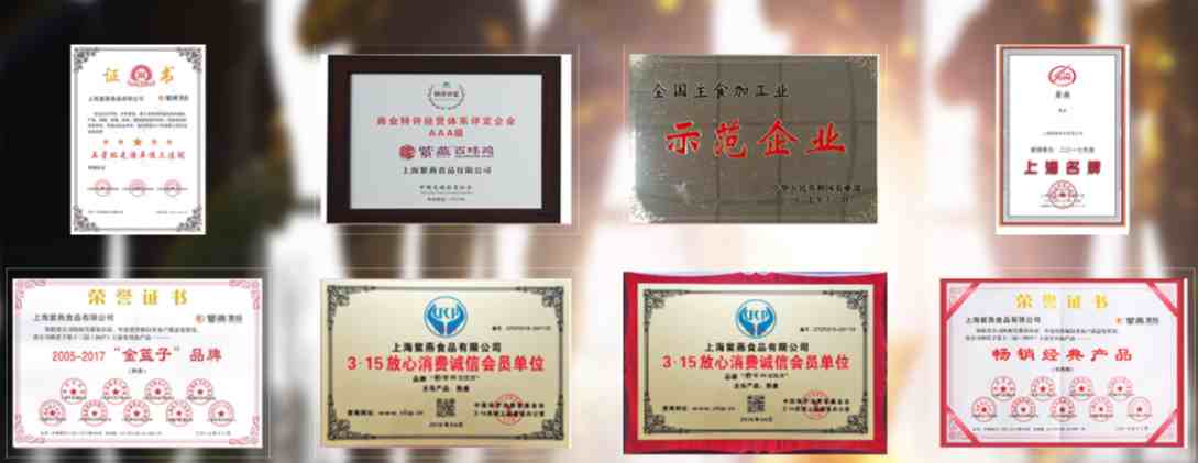 主食加工业示范企业”、“3·15诚信体系*单位”、 “2019年度闵行区区长质量奖品牌创新