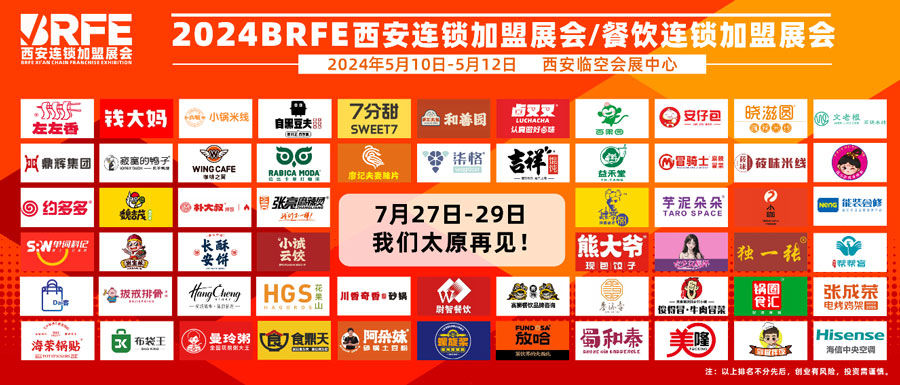2024 BRFE西安连锁加盟展会,将于2024年5月10日-12日在西安临空会展中心A馆盛大举办。此次展会展出面积达到10000㎡,汇聚数百个优质严选加盟品牌。