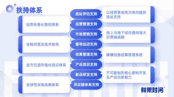 总部提供选址评估支持、开业指导支持、营销活动支持、技术研发支持、督导巡店支持、供应链体系