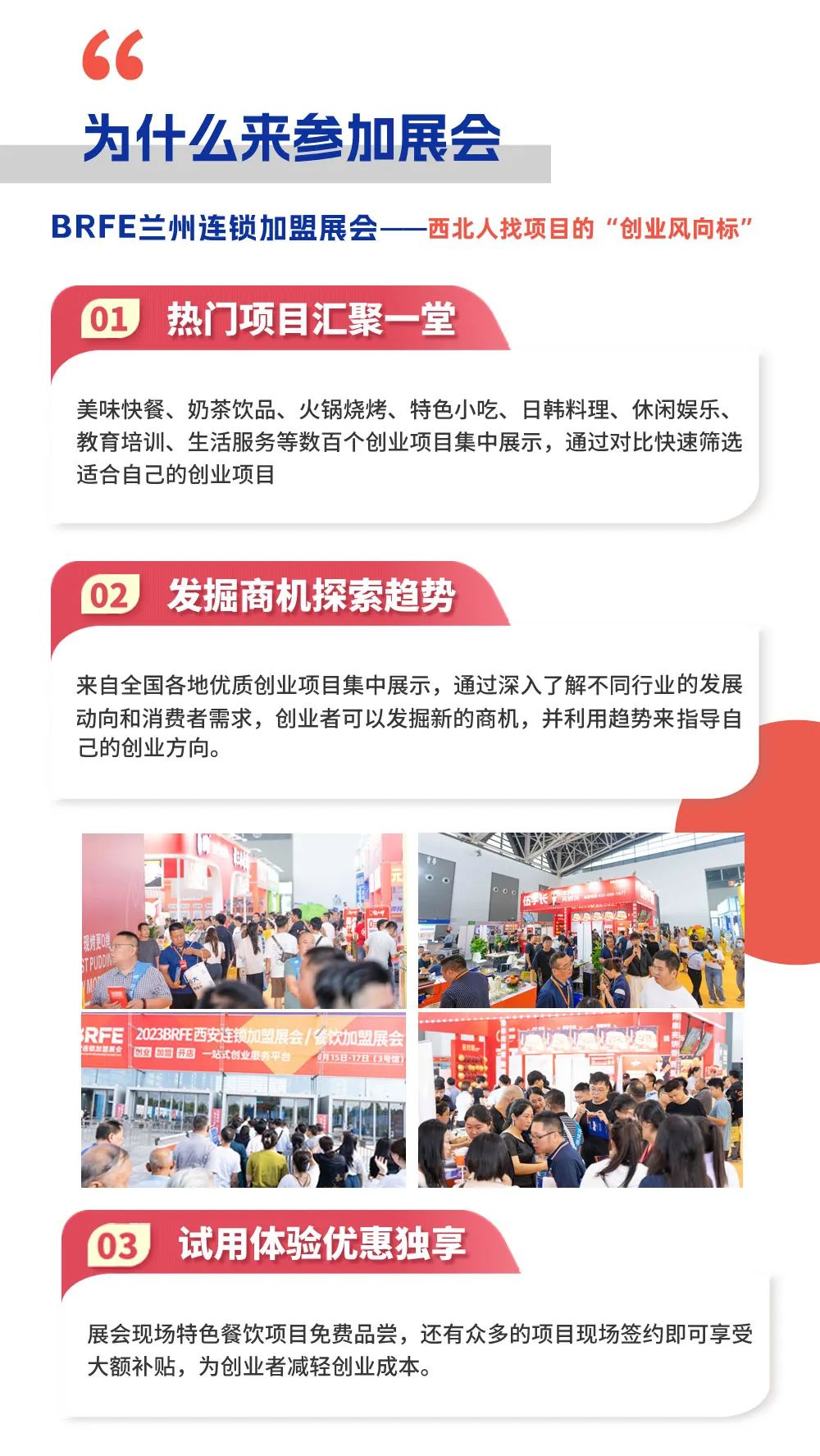 BRFE连锁加盟展会作为辐射西北、华中、华北的专业性连锁加盟展会,聚焦连锁加盟领域,规划了餐饮连锁加盟、大众创业项目等不同业态的展示区域,一直以来,BRFE连锁加盟展会聚焦西北地区,为连锁品牌方与创业者提供了一个值得信赖的交流合作平台。